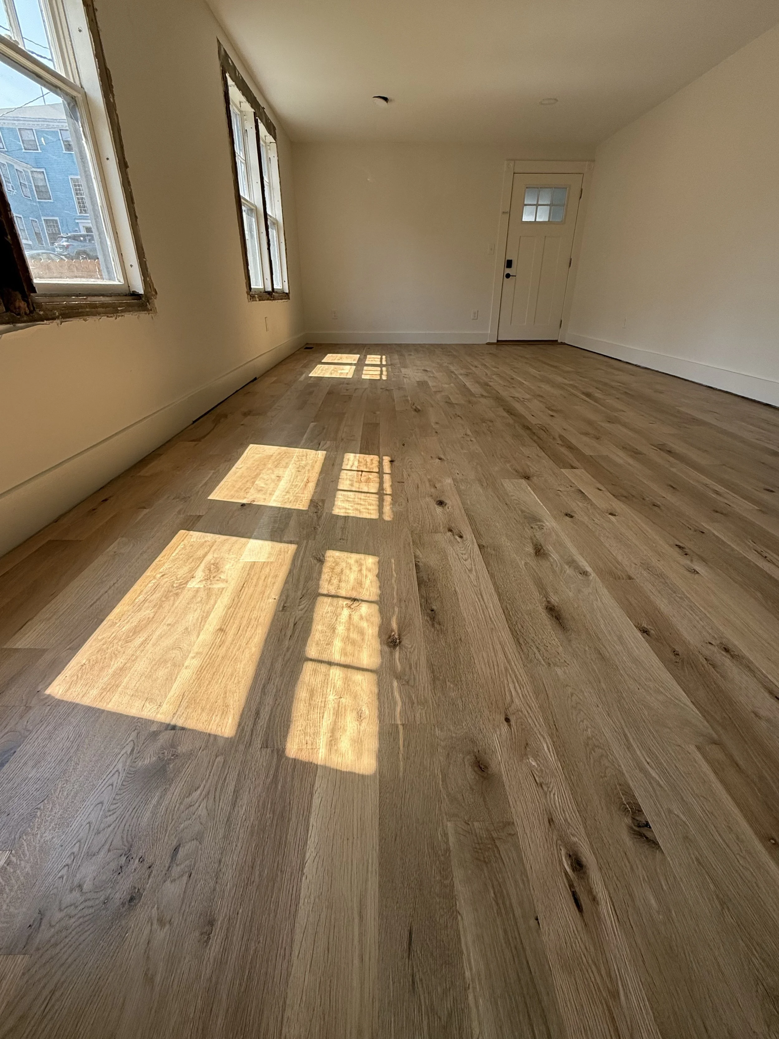 Choose from a wide variety of species like white oak, red oak, pine, Brazilian cherry, chestnut, or bamboo. For an even more unique and elegant look, consider ordering rift & quartered flooring for more complex grain patterns—available in almost all species! After our installations, we use dustless sanders to smooth, seal, and finish your new floors.